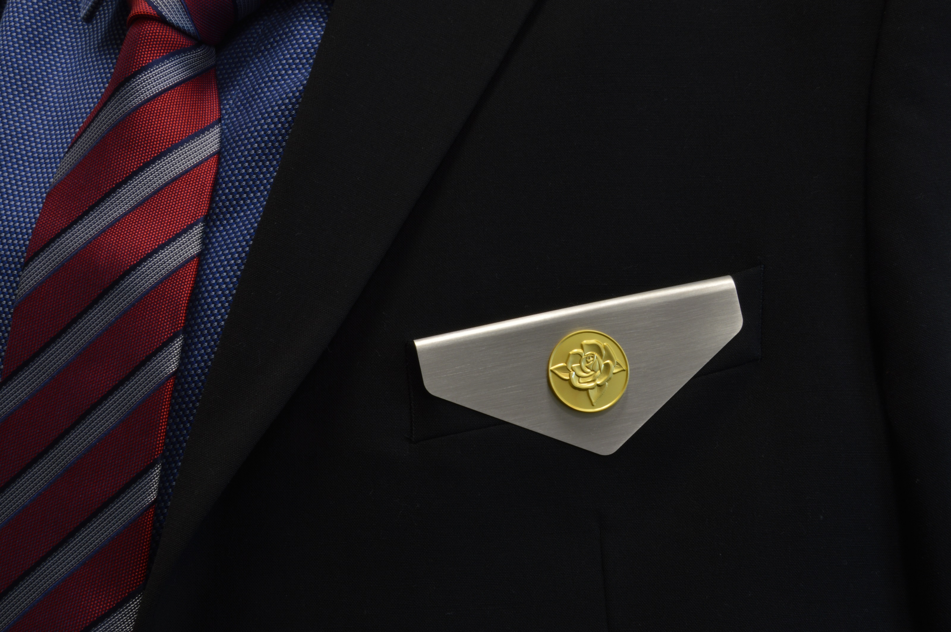 Faszinierende Farbeffekte einzelner Designs, hervorgerufen durch irisierende Spezialgravuren (Farbspieleffekt bei wechselndem Lichteinfall), unterstreichen ebenso eindrucksvoll die souveräne Eleganz und Wertigkeit von Bijou POCHETTE, wie z.B. die Exklusiv-Reliefprägung einer goldfarbenen Medaille mit Rosenmotiv. Die Motive „Rosenmedaille“ und „Sparkling Roses“ sind der ideale Hochzeitsschmuck für Bräutigam, Trauzeugen und Freunde des Brautpaares.