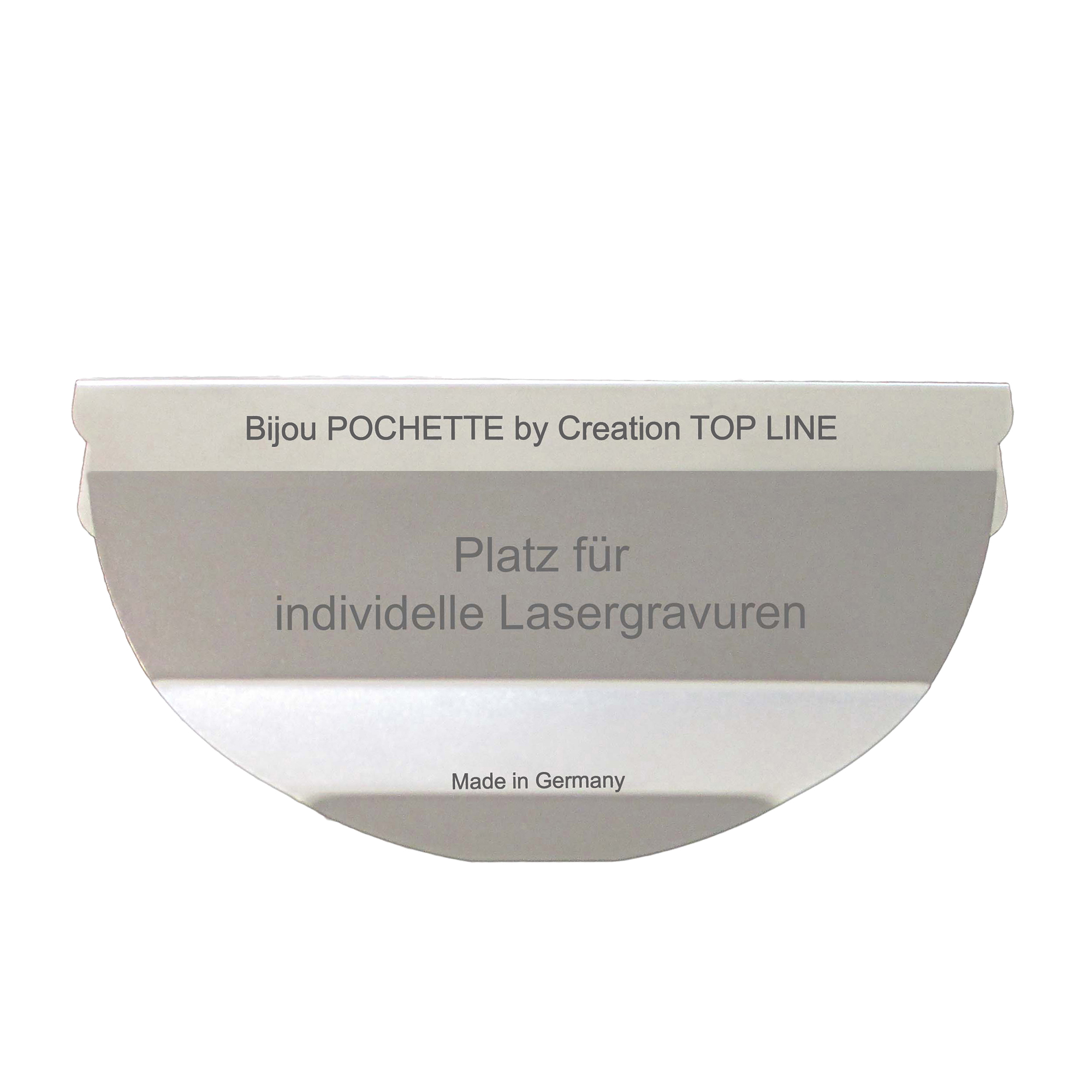 Attraktive Oberflächengestaltungen, individuelle Gravurmöglichkeiten auf der großflächigen Rückseite und seine Dauerhaftigkeit machen Bijou POCHETTE zu einem Schmuckstück mit hohem Erinnerungswert und nachhaltiger Zukunftsperspektive.